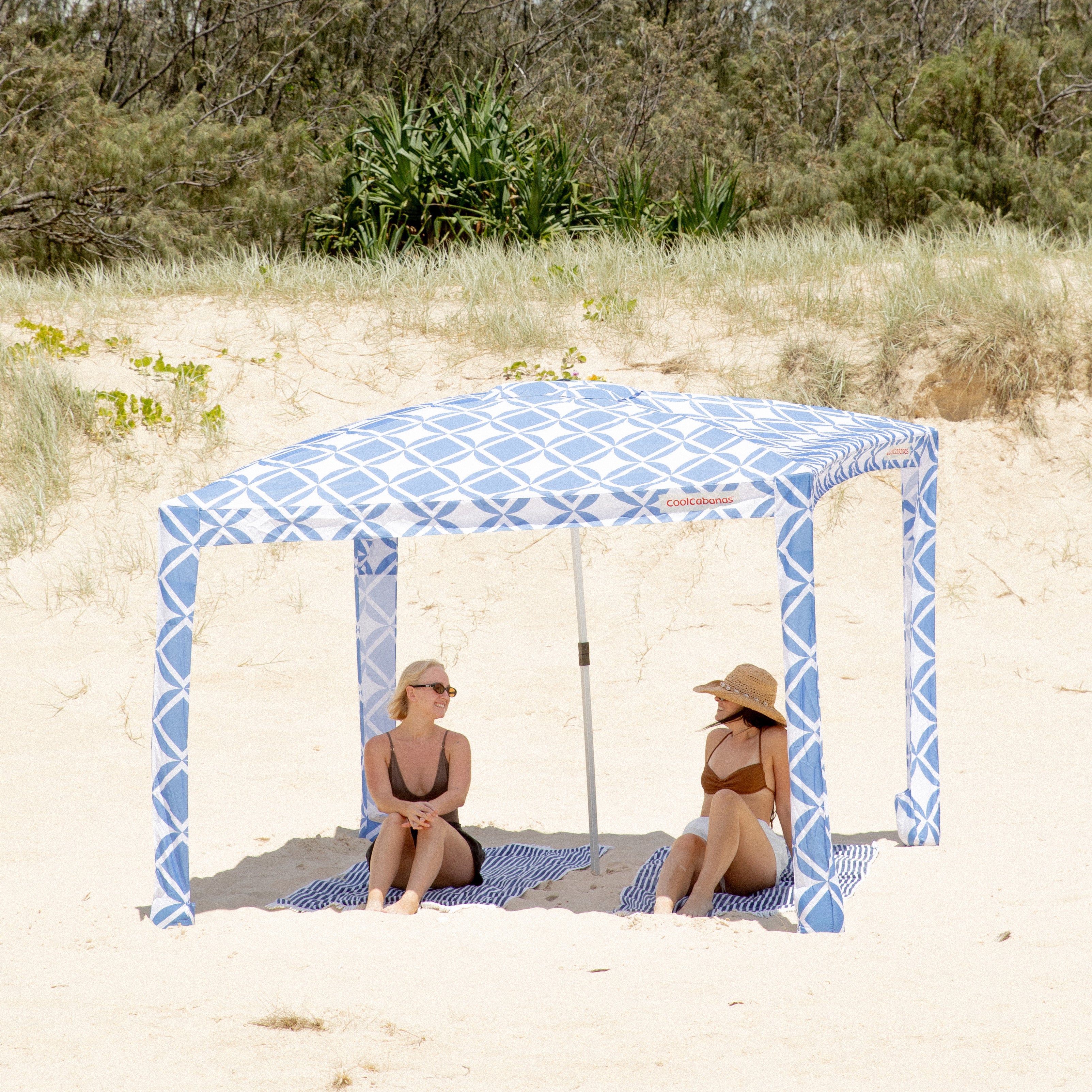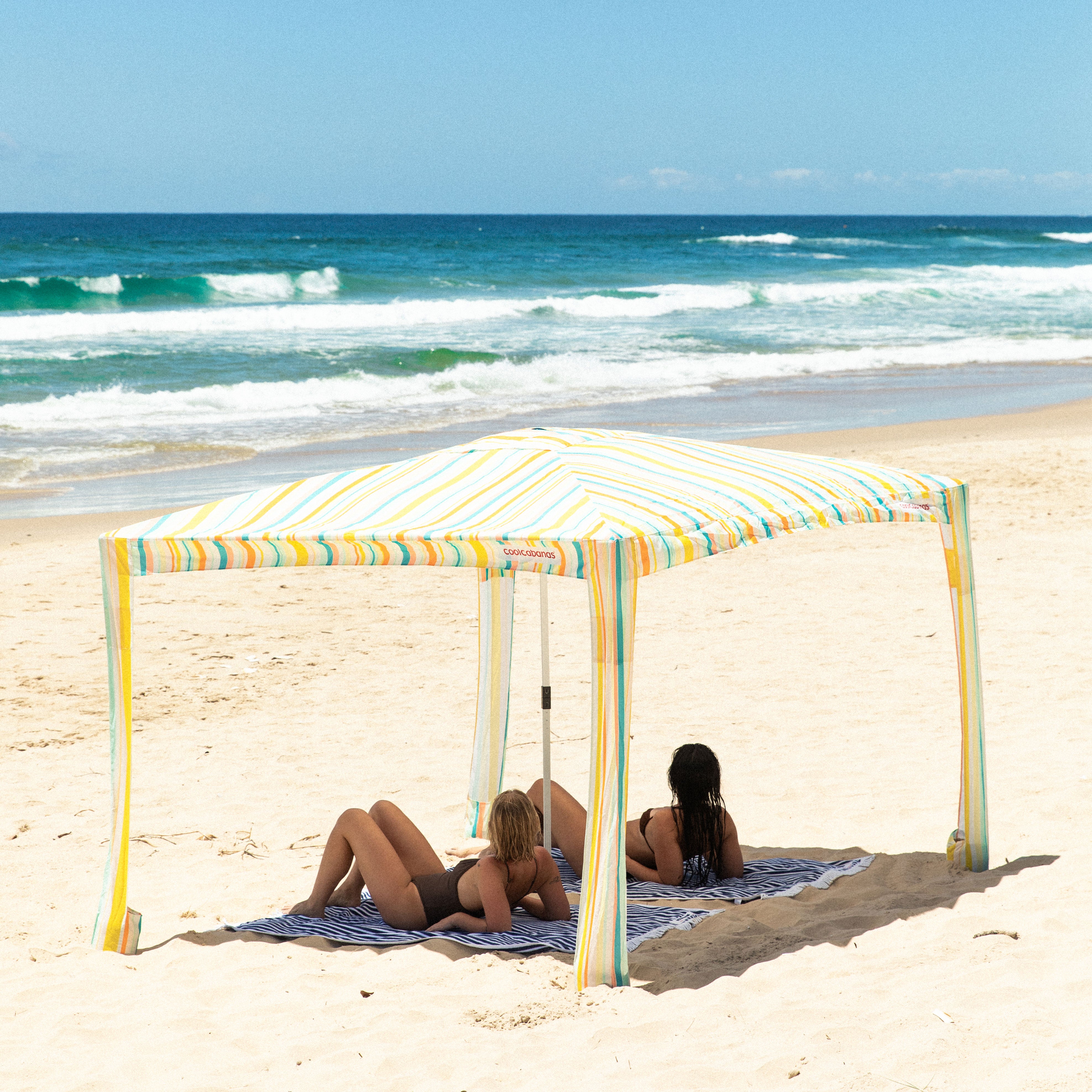 A large beach umbrella is typically 6ft in diameter, which provides 28ft2 of shade, less than half the shade of a large CoolCabana.