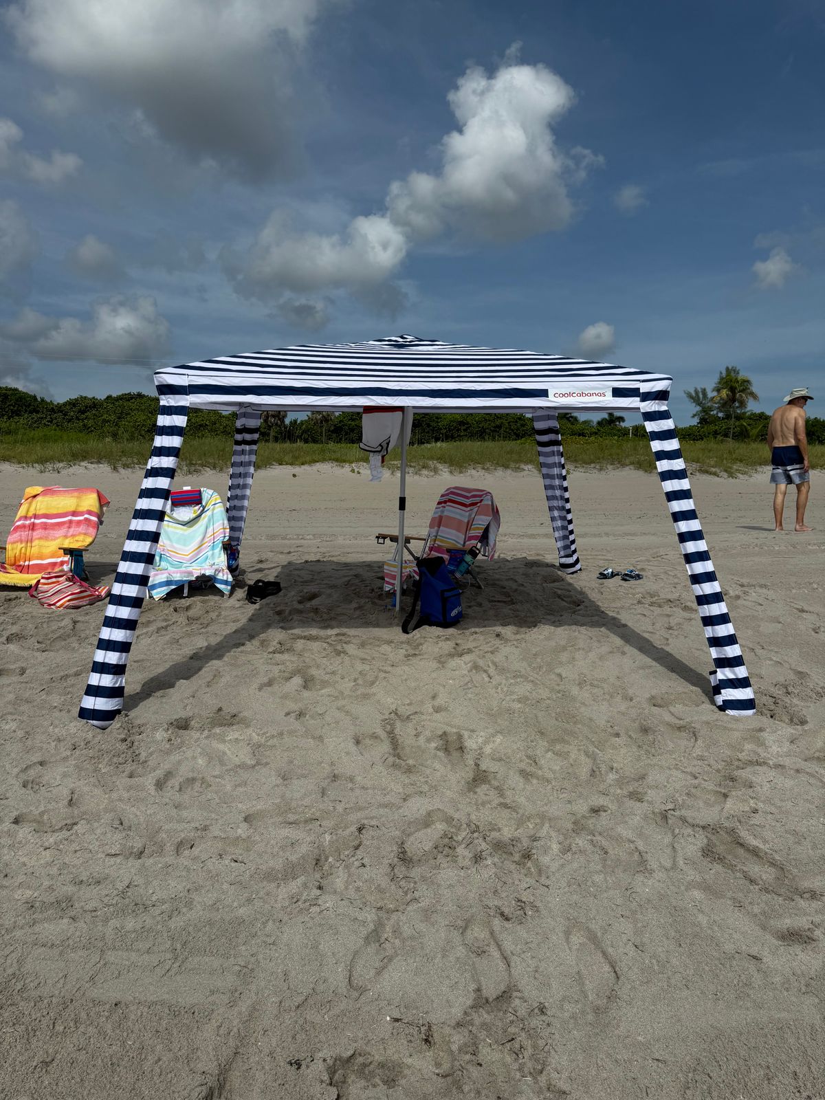 A large beach umbrella is typically 6ft in diameter, which provides 28ft2 of shade, less than half the shade of a large CoolCabana.